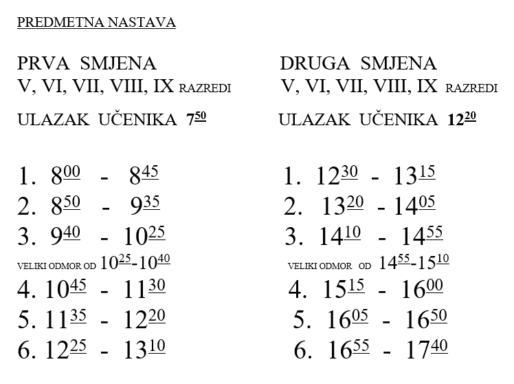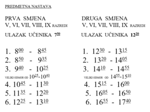 • Raspored zvonjenja