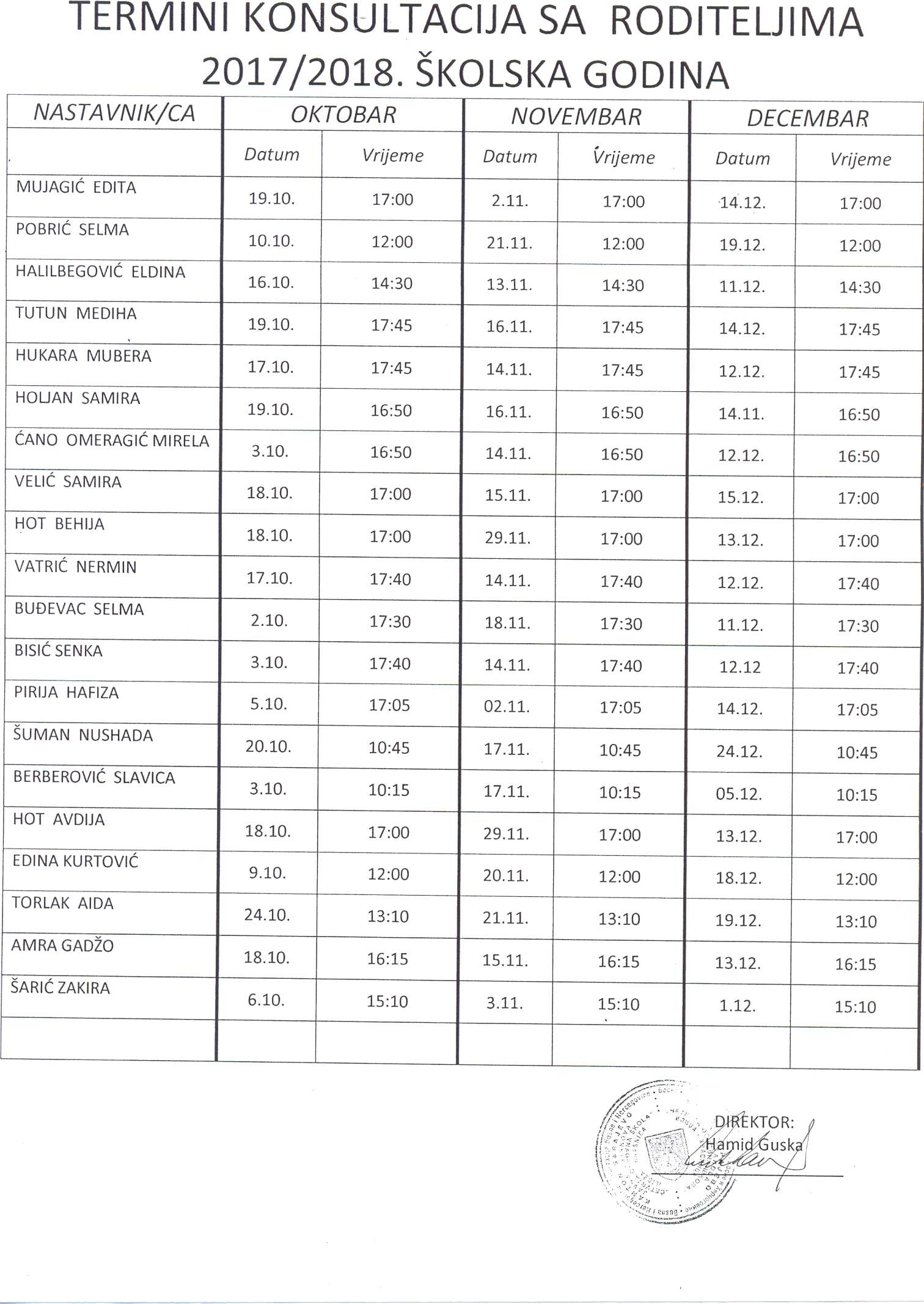• Historijat škole
