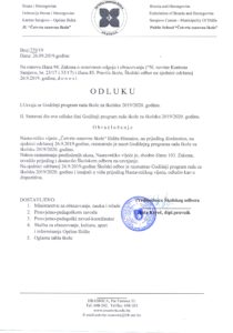 odluka o usvajanju Godišnjeg programa rada škole za školsku 2019-2020. godinu.
