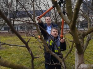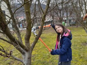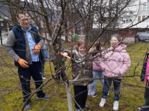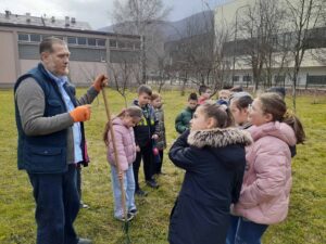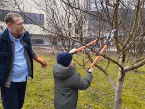 Posebno su uživali u aktivnostima čišćenja voćnjaka i orezivanja voćki u rano proljeće. Usvajali su znanja i dobili korisne informacije od našeg vrijednog uposlenika Salčin Semira. Naučili su na konkretnim primjerima kako se orezuju voćke, zbog čega se to radi i u koje vrijeme, te kakav će urod polodova dati ta posvećenost i briga o biljkama. Učenici su imali priliku da baš oni rukuju priborom za radove u voćnjaku i da orezuju grančice voćki. Također su učestvovali u krečenju stabala voćki i mnogo toga naučili od našeg Semira izuzetno posvećenog i vrsnog poznavaoca svih vrsta radova u prirodi, školi i školskom dvorištu. Učenici su imali mnogo pitanja i mnogo naučili.